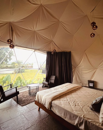 The layout of the space is carefully zoned around a central garden, which acts as the heart of the property—anchoring all activity zones in a cohesive, functional manner. Geodesic domes evoke the charm of a boutique holiday resort, strategically positioned to align with the sun path, allowing guests to enjoy enriched morning views and natural lighting throughout the day.
