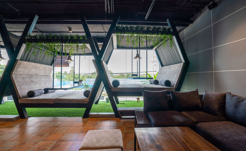 Each pod is positioned to take full advantage of the panoramic views of HITEX, placing users in the dynamic heart of the city while maintaining a peaceful and focused ambiance within. The industrial-chic aesthetic, layered with soft textures and diffused lighting, creates a unique atmosphere we call the "Work Factory"—a balance between energy, comfort, and functionality.